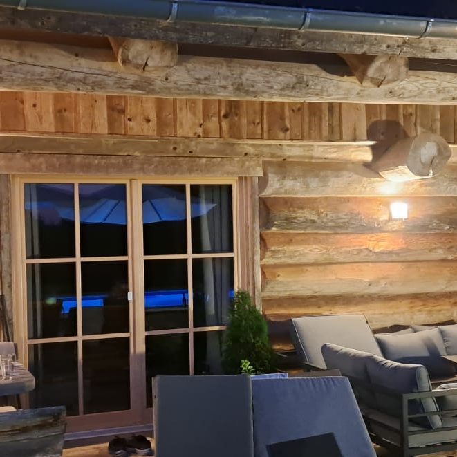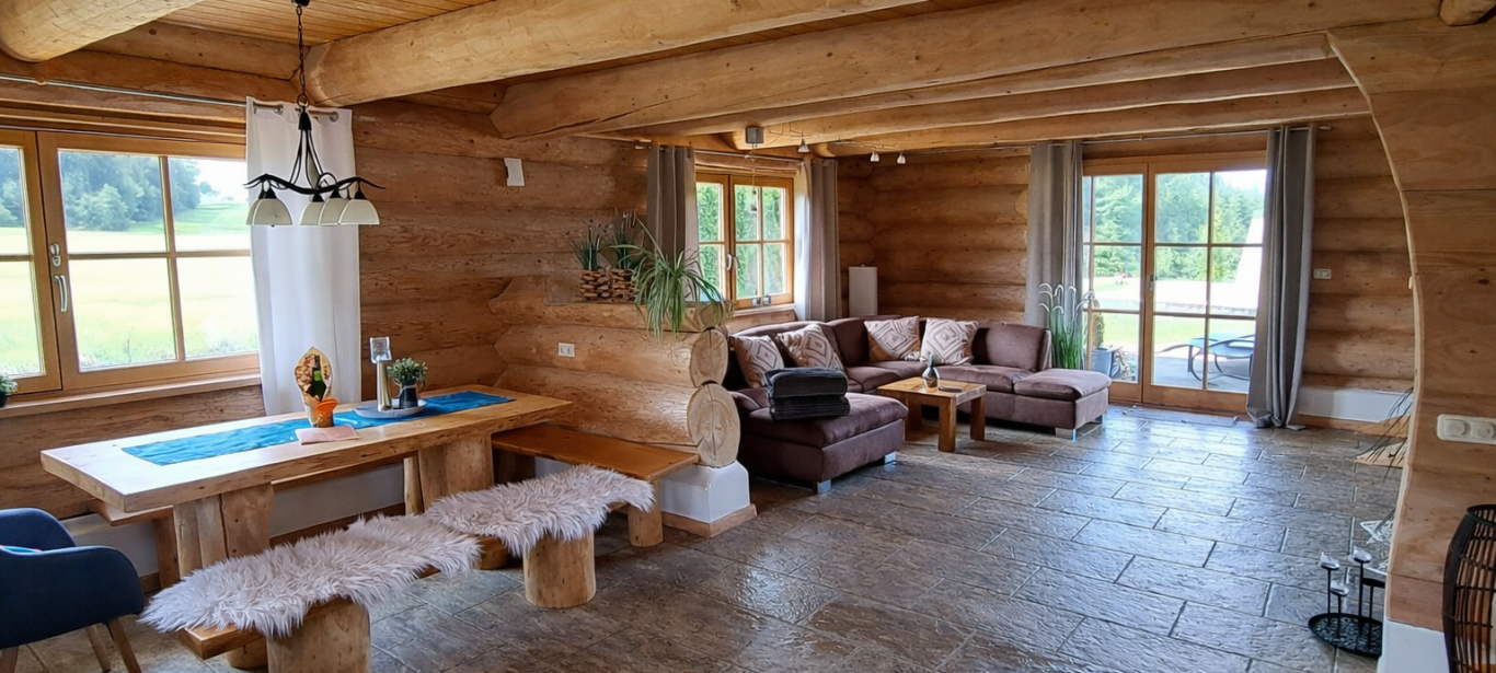 Drei-Flüsse-Blockhaus – Ihr Ferienhaus bei Passau. Unser Drei-Flüsse-Blockhaus besteht aus zwei identischen Chalets, die über einen gemeinsamen Haupteingang erreichbar sind und sich danach in zwei separate Wohnungen aufteilen.Perfekt für Familien, Freunde oder Paare, die gemeinsam reisen und trotzdem Privatsphäre genießen möchten.